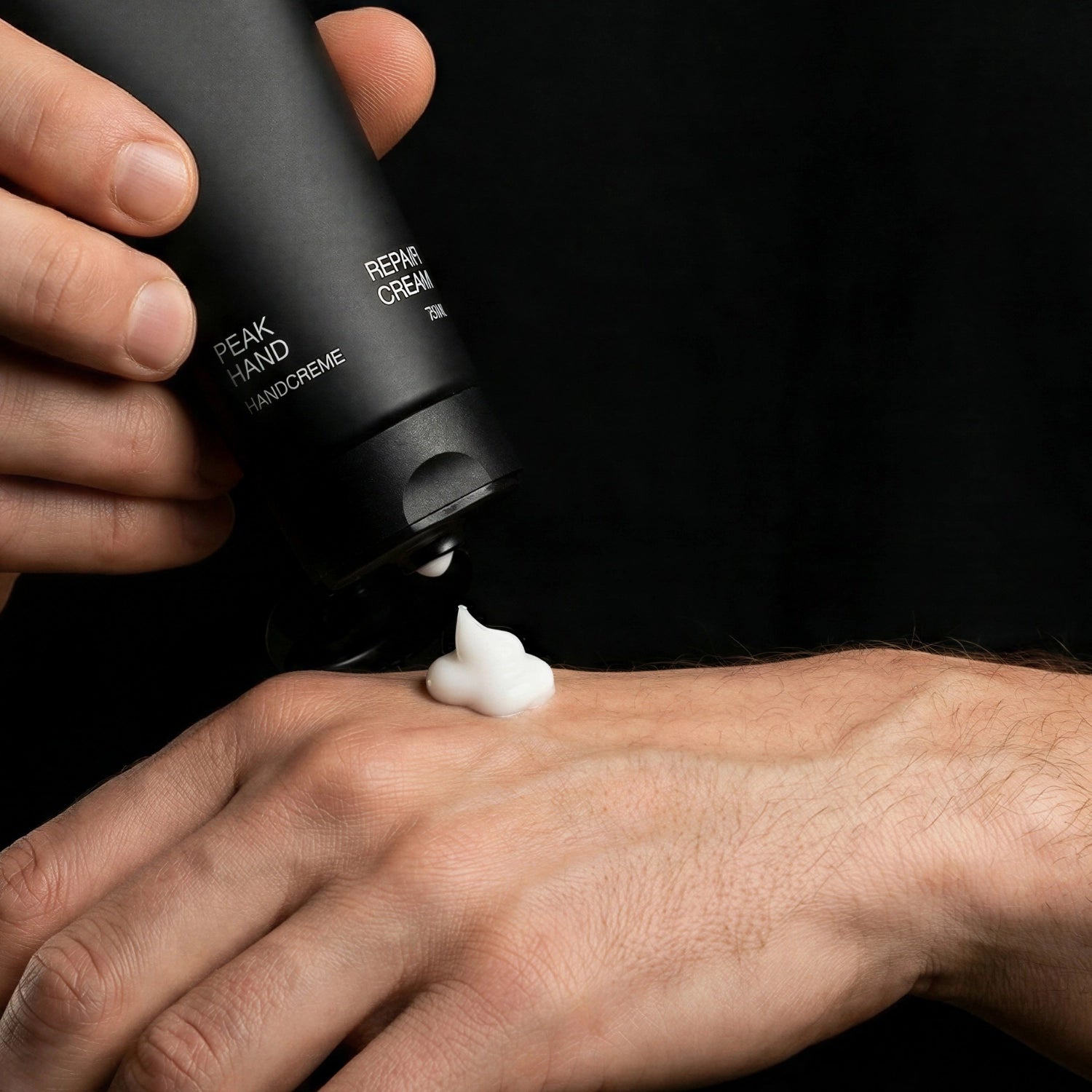 Die Peak Repair Hand Cream ist keine klassische Pflege, sondern eine hochwirksame Repair-Formel, die speziell für belastete Männerhände entwickelt wurde. Während viele herkömmliche Handcremes vor allem auf Fett setzen, arbeitet unsere Formel tief in der Haut – ohne Film und ohne rutschige Oberfläche.