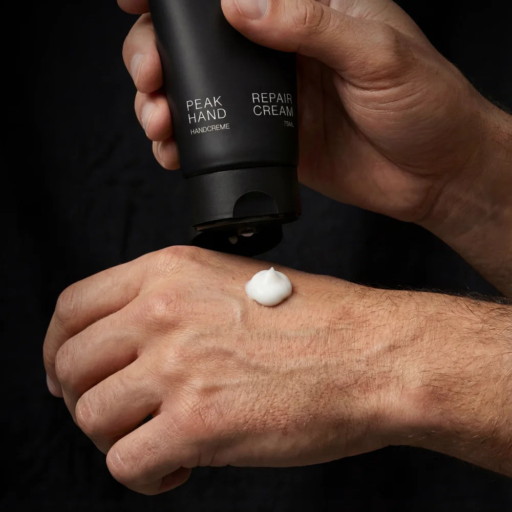 Die Peak Repair Hand Cream ist speziell für Männer entwickelt, deren Hände täglich gefordert sind – durch Arbeit, Sport, Kälte oder häufiges Waschen. Sie regeneriert raue, trockene oder rissige Haut und stärkt die Barriere, ohne die Hände rutschig zu machen.