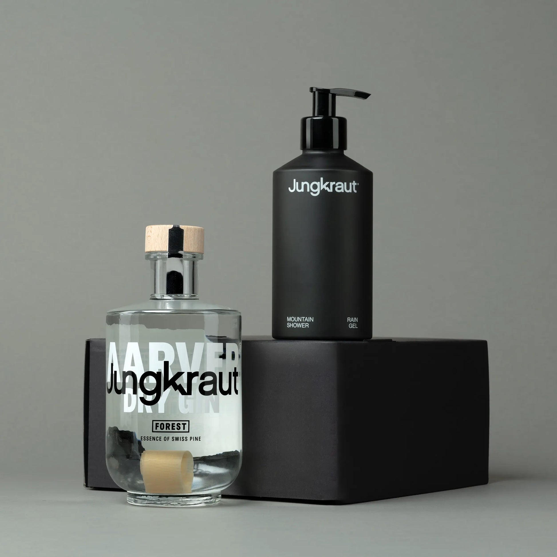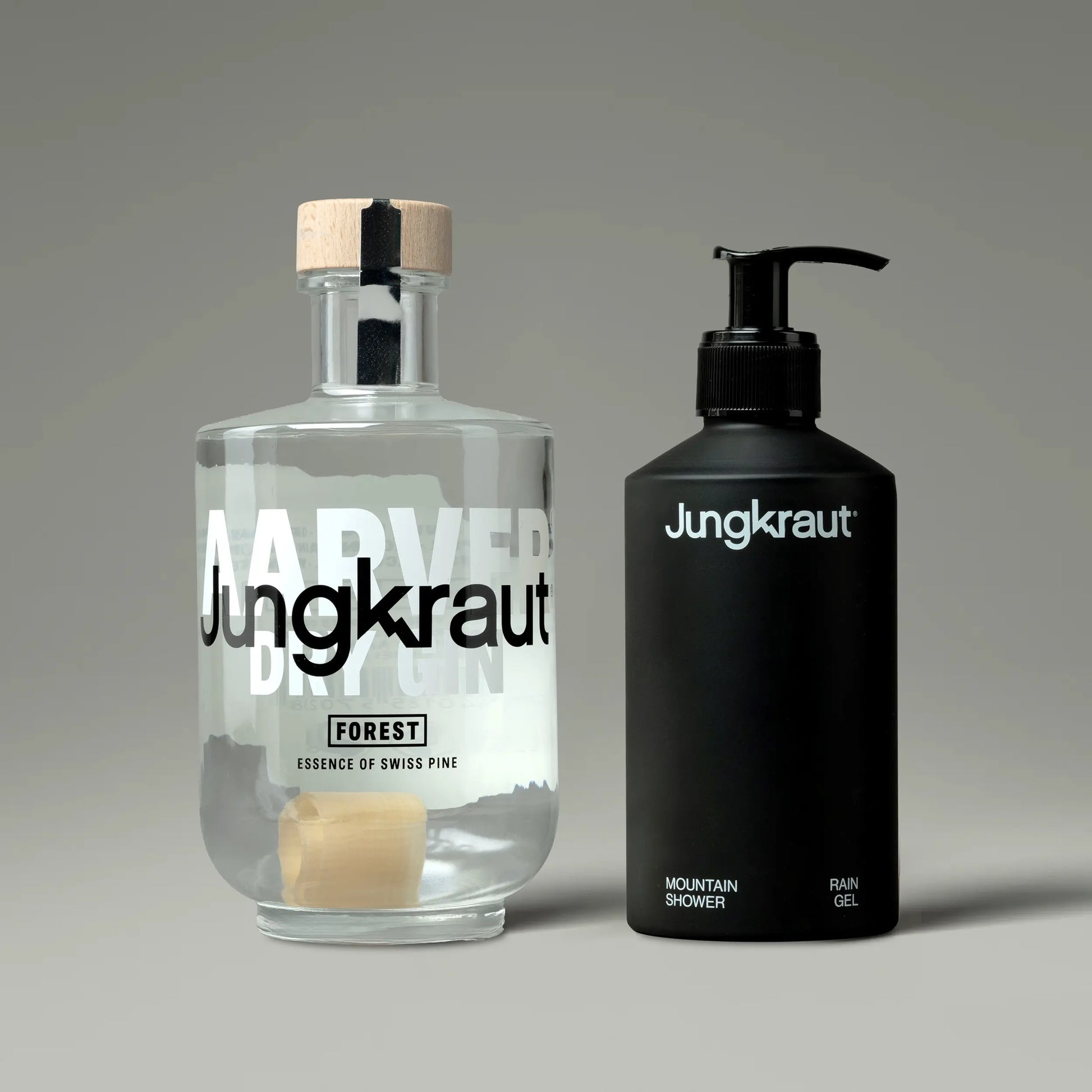 Der AARVER x Jungkraut Forest Gin und das Jungkraut Shower Gel für ein unverfälschtes Genusserlebnis von innen wie aussen. Beide Produkte kommen ganz ohne Zusatzstoffe aus.