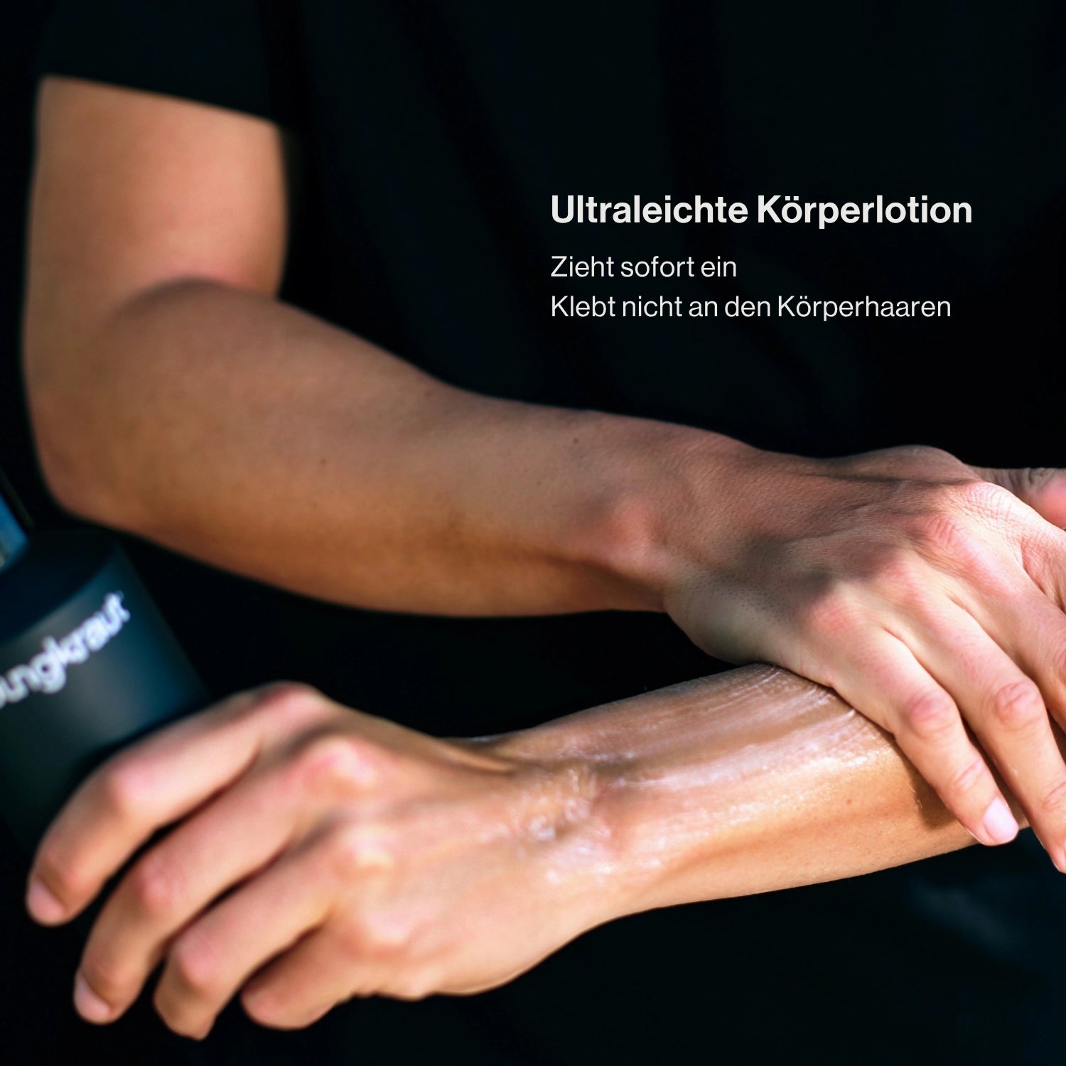 Körperlotion für 24h intensive Feuchtigkeit: Fermentierter Hirsesamenextrakt stärkt die Hautbarriere und schützt vor Umwelteinflüssen. Die ultraleichte Formel zieht schnell ein und pflegt ohne zu fetten – für spürbar hydrierte und gestärkte Männerhaut im Winter.